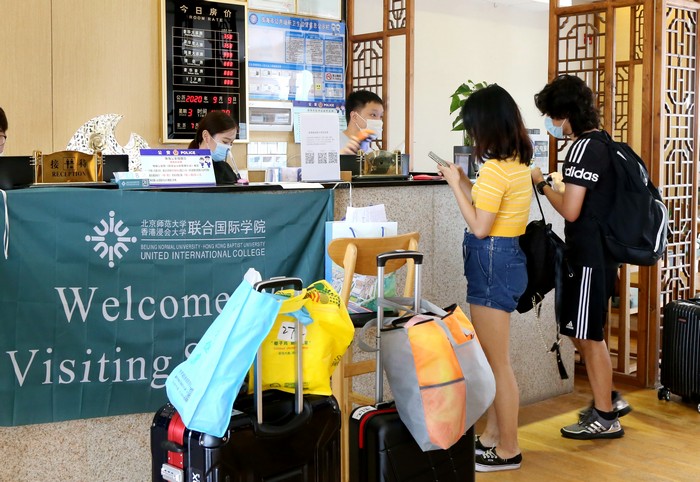 Affected by the outbreak of COVID-19, 73 students from Emerson College and three students from Concordia College were unable to study in the US because of visa and flight issues. Therefore they will study for a semester or possibly a whole academic year at UIC. On 9 September, they also came to UIC to go through the admission formalities, and live and study together with UIC students.