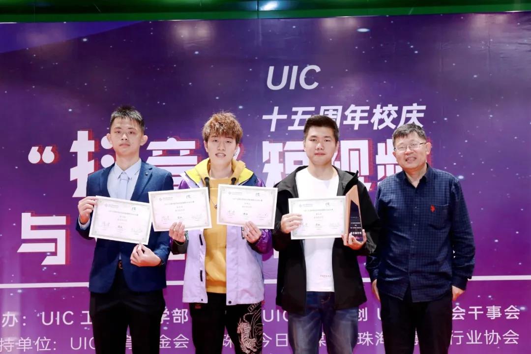 Prof Liu (right) presenting students with certificates for the vlog and video competition