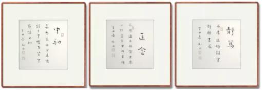 Three Chinese calligraphy works, meaning "Neutralization", "Mindfulness" and "Tranquility" in the house, representing the views of "Confucianism, Buddhism and Taoism", respectively
