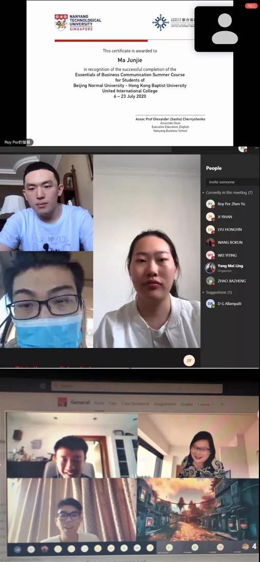 Chen Canrong, Year 3 student from the English Language and Literature Studies Programme, participated in the Yale University online summer program in 2020. He believes that he can experience top international universities' teaching and accumulate experience for postgraduate applications; he also hopes to communicate with more outstanding students.