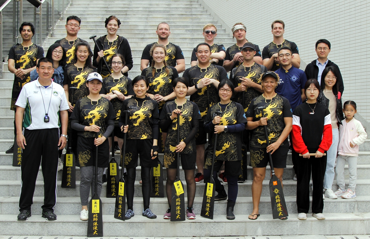 Candy (front row, third from left) taking part in the Dragon Boat activity on UIC's campus