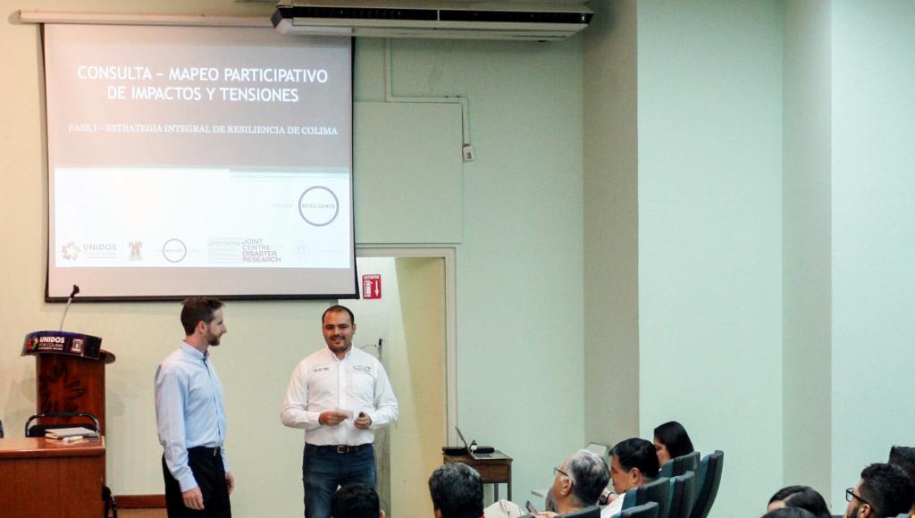 Dr Huggins presenting disaster resilience research to the local government in Colima, Mexico