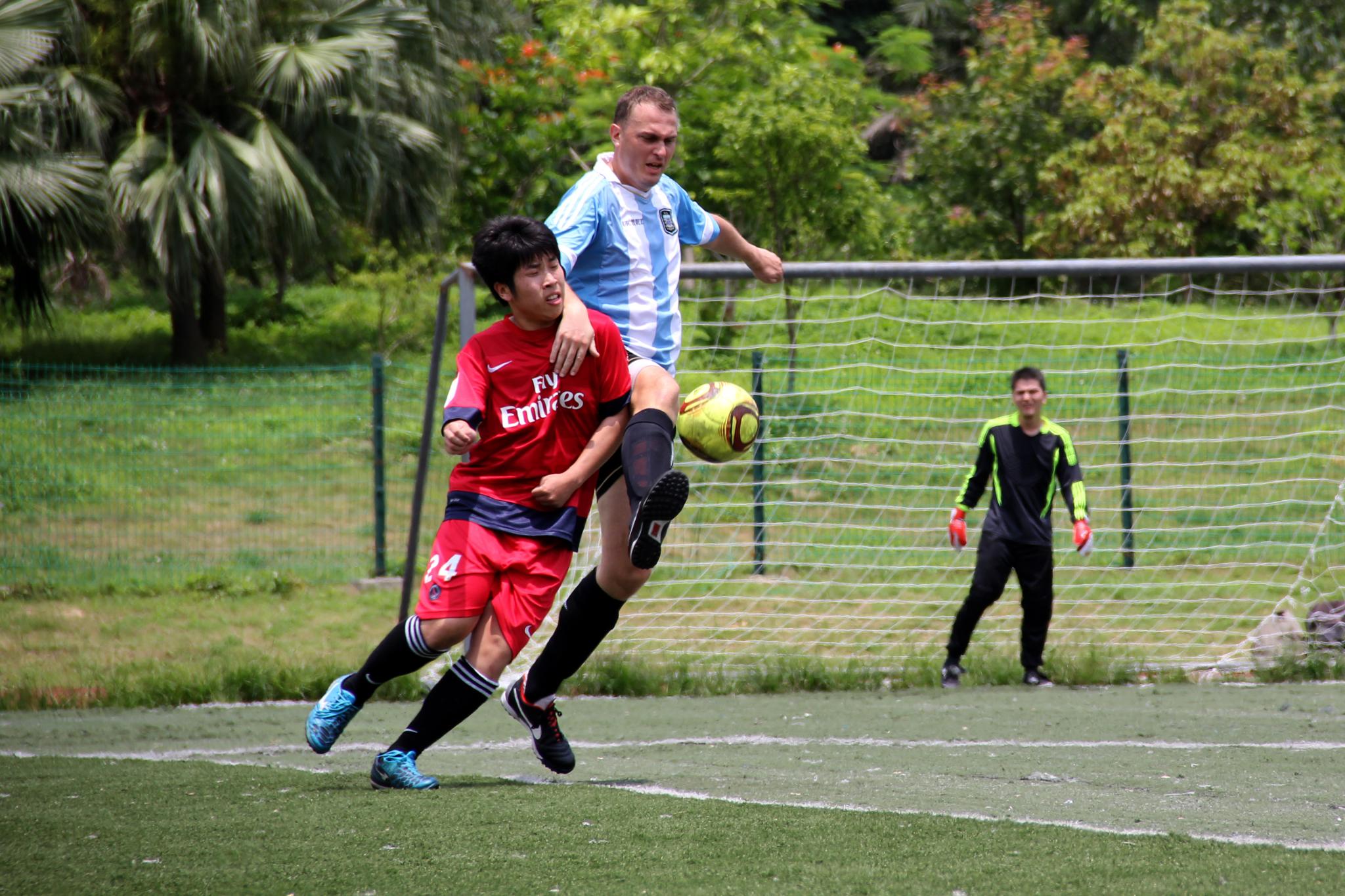 Thomas playing in a UIC student-organised internal football tournament (2013)