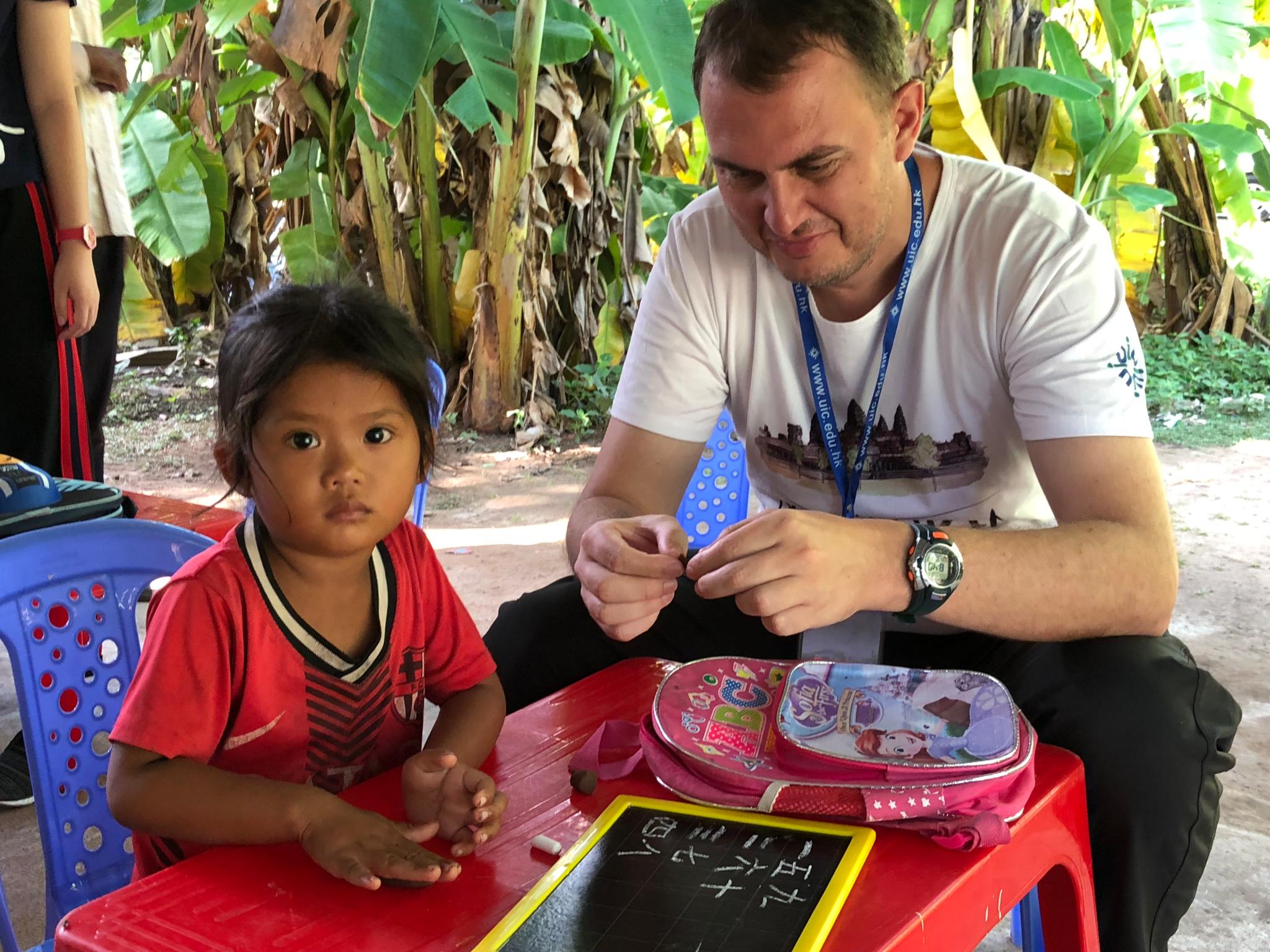 Thomas at Banteay Daek village school during the UIC Cambodia volunteer summer programme (2018)