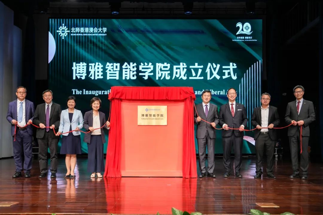 在仪式上,香港教育局局长蔡若莲,香港浸会大学校长卫炳江,副校长周伟立,珠海市台港澳事务局局长黄萃,珠海市教育局局长习恩民,北师港浸大校长陈致,常务副校长周荫强,党委书记、副校长毛亚庆共同为北师港浸大博雅智能学院揭牌。