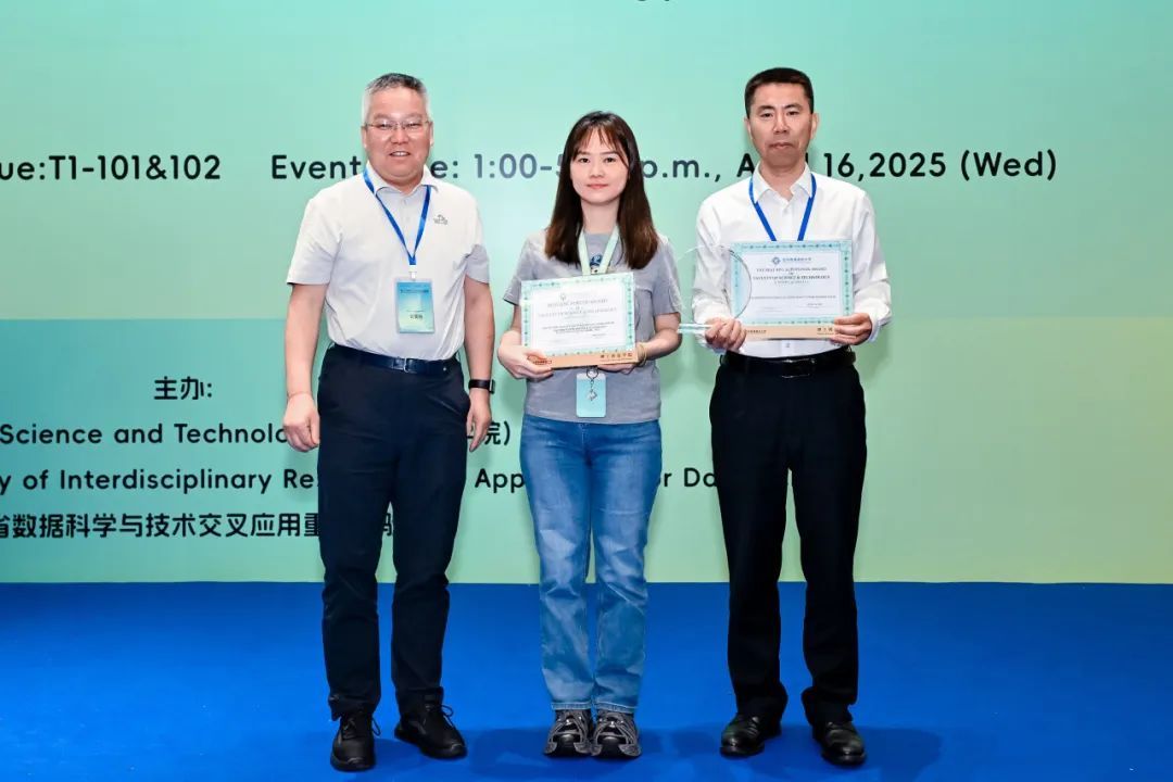 左起:颁奖嘉宾吴奖伦教授、获奖学生吴英姿、指导老师徐宝军教授