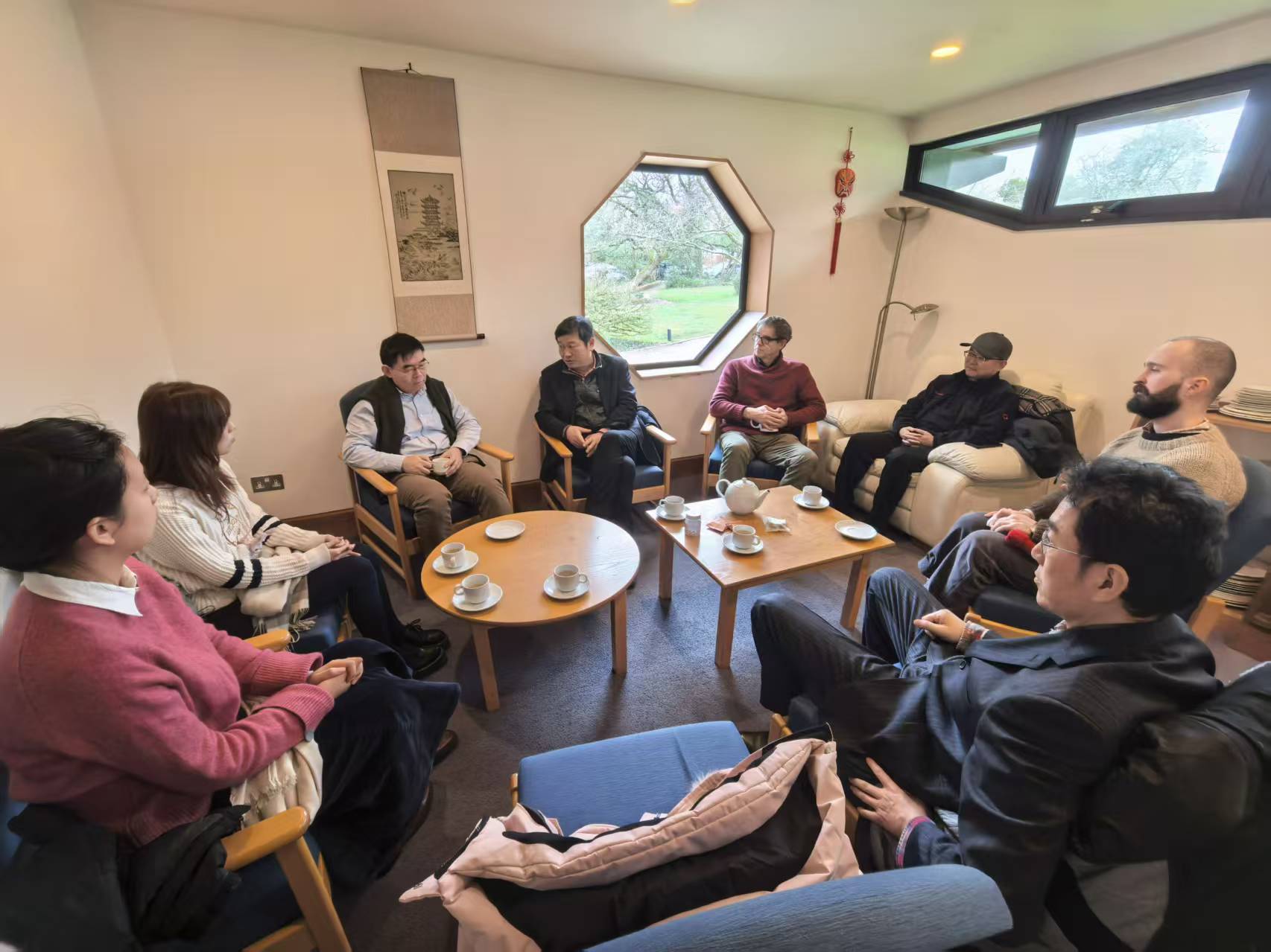 同日,陈致校长还邀请两位在剑桥大学攻读硕士学位的校友一同参访李约瑟研究所,与所长梅建军教授、东亚科学史图书馆馆长约翰·莫弗特(John P. C. Moffett)进行座谈。李约瑟研究所长期致力于推动东亚科学技术与医学史研究发展,促进东西方文明互鉴融合,此次参访进一步拓展了本次英伦之行的学术对话维度。