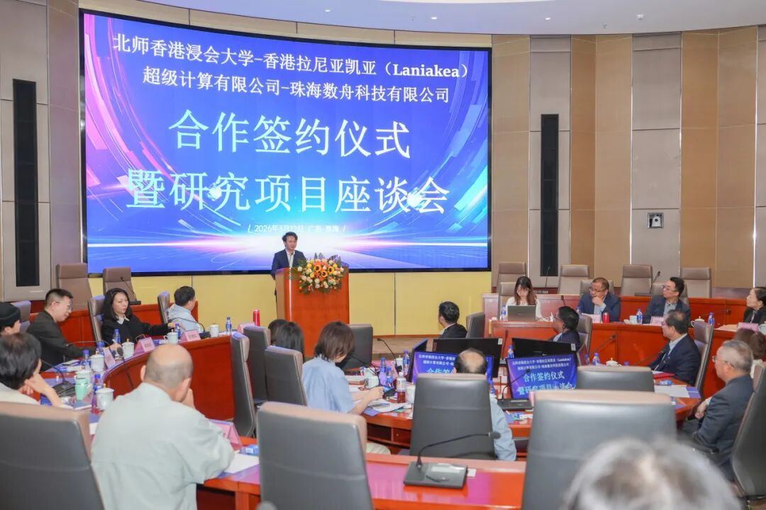 2026年3月12日,北师香港浸会大学(BNBU)与香港拉尼亚凯亚(Laniakea)超级计算有限公司、珠海市数舟科技有限公司共同举行“黑天鹅”事件研究项目合作签约仪式暨座谈会。三方正式携手,围绕小概率事件的建模、预测与应用展开深度合作。