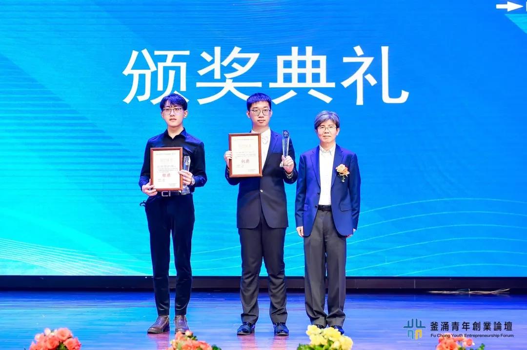 陈致教授为“植人一生”团队颁发“菁牛汇”杯UIC创新创业大赛金奖