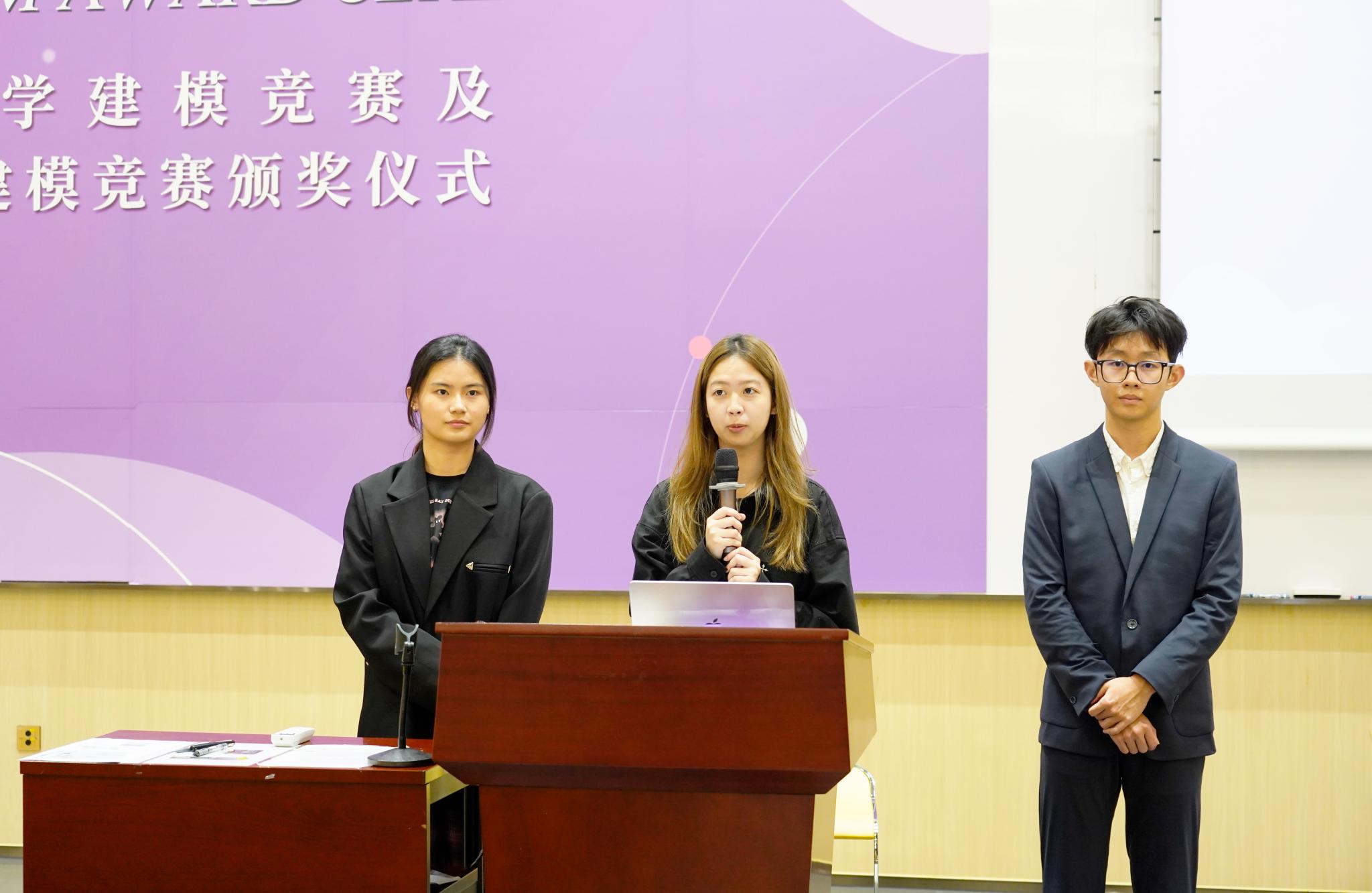 轩辕哲教授(右一)为美赛二等奖获奖同学颁奖