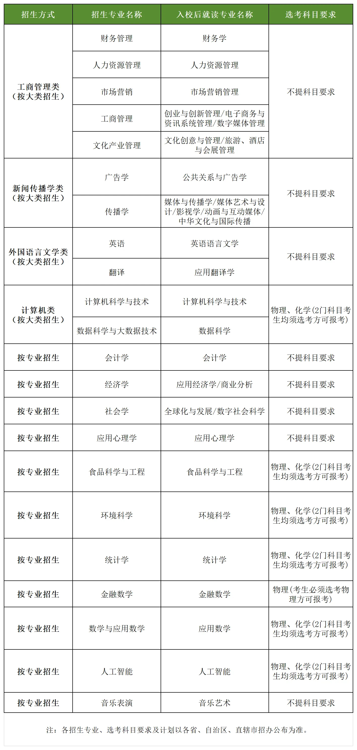 今年北师港浸大31个本科专业将继续按专业大类加专业的方式招生,广东考生选考科目要求如下: