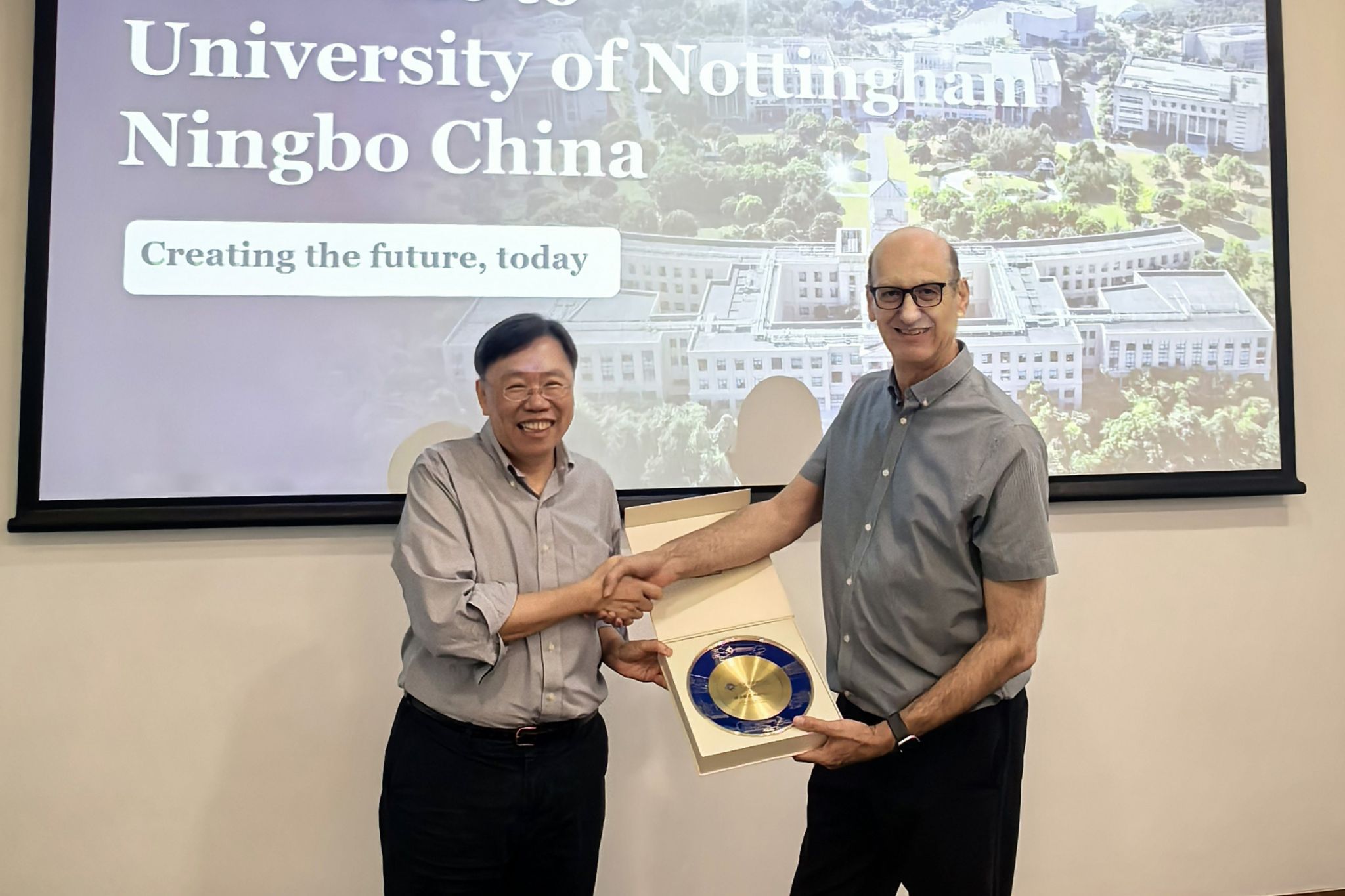 2025年9月23日,北师香港浸会大学(BNBU)常务副校长周荫强教授一行到访宁波诺丁汉大学,与该校执行校长乔纳森·加里波第教授、合作与创新副校长张毓隆教授等举行座谈。双方围绕数字化转型、智能校园建设、大学竞争力提升等多个议题展开深入交流,共探合作办学高质量发展路径。