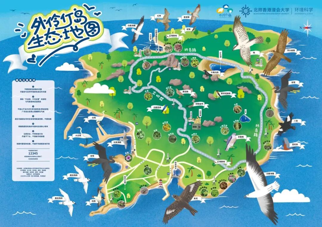作为北师香港浸会大学(BNBU)与珠海市担杆镇“百千万工程”校地合作的重要成果,由理工科技学院环境科学专业牵头打造的外伶仃岛生态地图近日正式发布。地图共收录物种63个,包括国家一级保护野生动物白腹海雕、国家二级保护野生动物黑冠鳽、国家二级保护野生植物凹叶红豆等十余种国家重点保护野生动植物,为海岛生物多样性保护与特色发展提供重要参考。