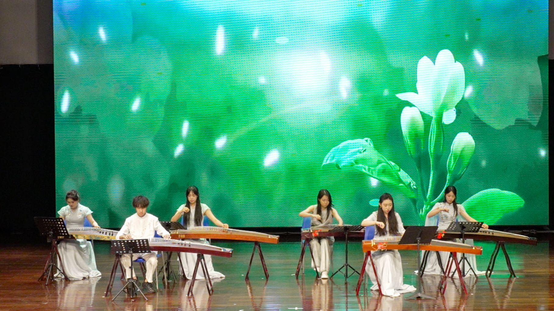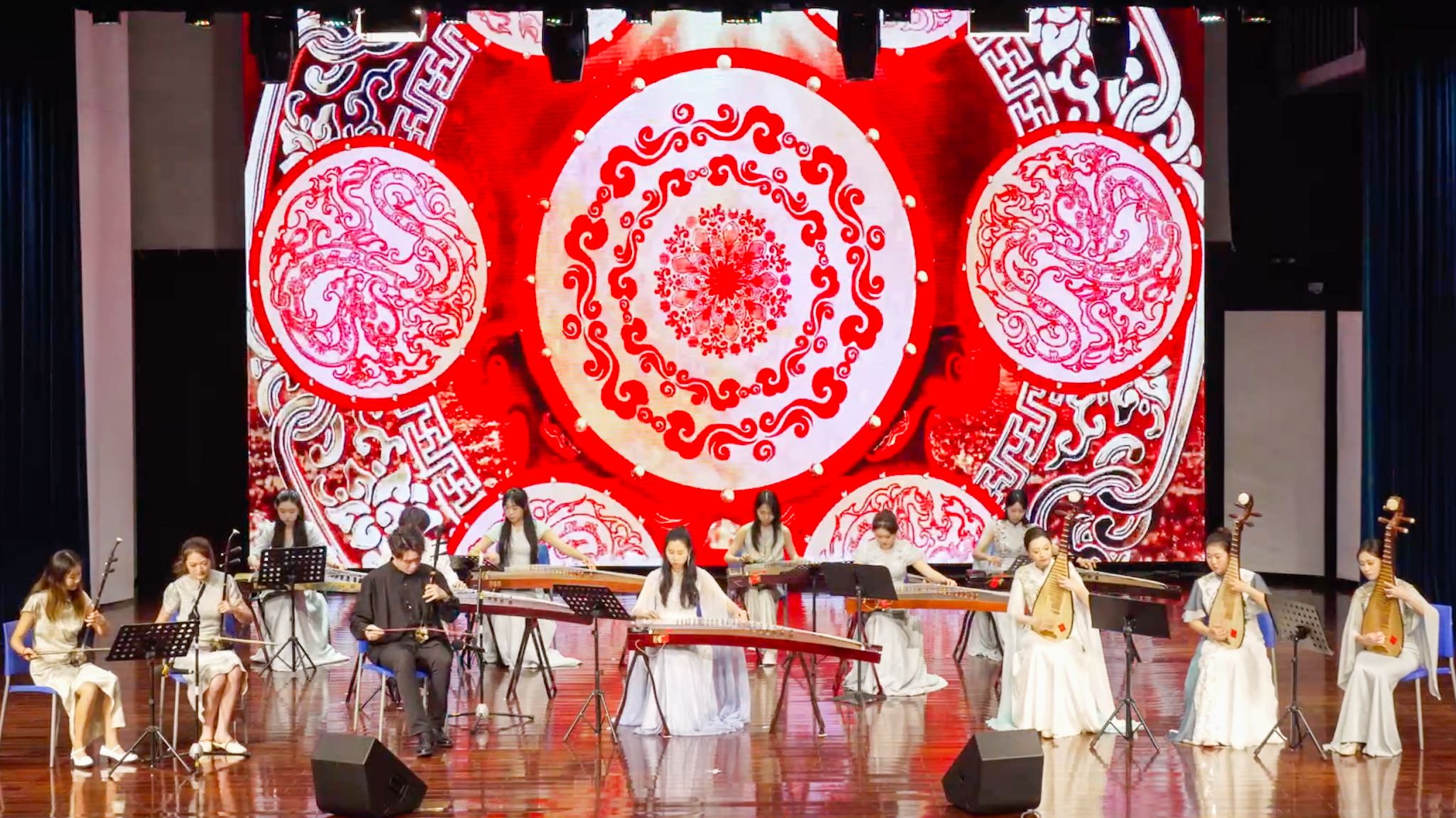 在音乐会第二篇章“校园之韵·薪火相传”上,北师港浸大音乐系的师生轮番奏响民乐合奏《喜洋洋》、古筝三重奏《茉莉芬芳》、琵琶古筝二重奏《春江花月夜》、二胡齐奏《赛马》以及《龙船》、《盛世国乐》等经典民族乐曲,拉奏弹拨,乐音动听,展现了扎实的专业功底。