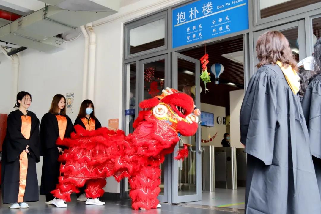 北师港浸大党委书记、副校长(行政)毛亚庆教授出席活动。各个苑舍的舍监、舍堂导师和学长舍堂导师等穿着代表各自苑舍的礼袍,在门口迎接醒狮的到来。