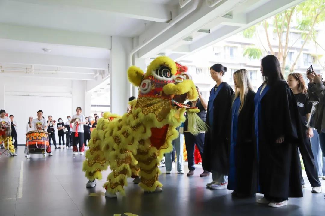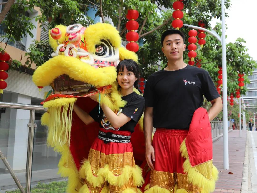 2017级公共关系与广告学专业的温灿是今天参与舞狮采青的同学。他在大一时就加入了学校的龙狮队,在大二时学习了全人教育体育文化板块的龙狮课程,团队还曾在全国大学生舞龙舞狮锦标赛中获得冠军。温灿说,学习舞狮非常辛苦,但三年多来,舞狮给他带来了很大成就感和幸福感。未来他希望自己能身体力行地传承和创新龙狮文化。