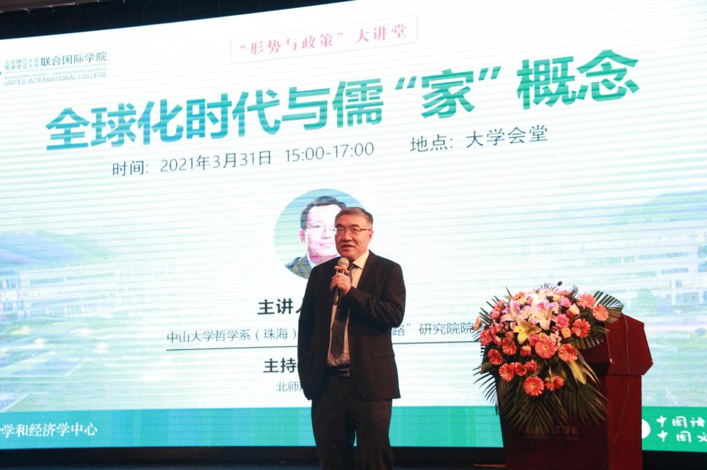 2021年3月31日下午,中山大学哲学系(珠海)主任、“一带一路”研究院院长陈建洪教授做客美丽的北师港浸大校园,为我校师生带来了一场题为《全球化时代与儒“家”概念》的精彩讲座。