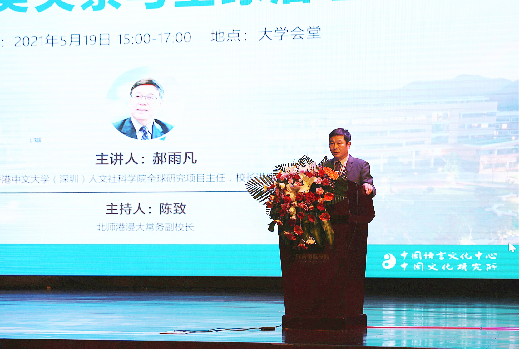2021年5月19日下午,“形势与政策”系列讲座之“中美关系与全球治理”在大学会堂精彩开讲。本次讲座的主讲嘉宾为香港中文大学(深圳)人文社科学院全球研究项目主任郝雨凡教授,由常务副校长陈致教授主持。