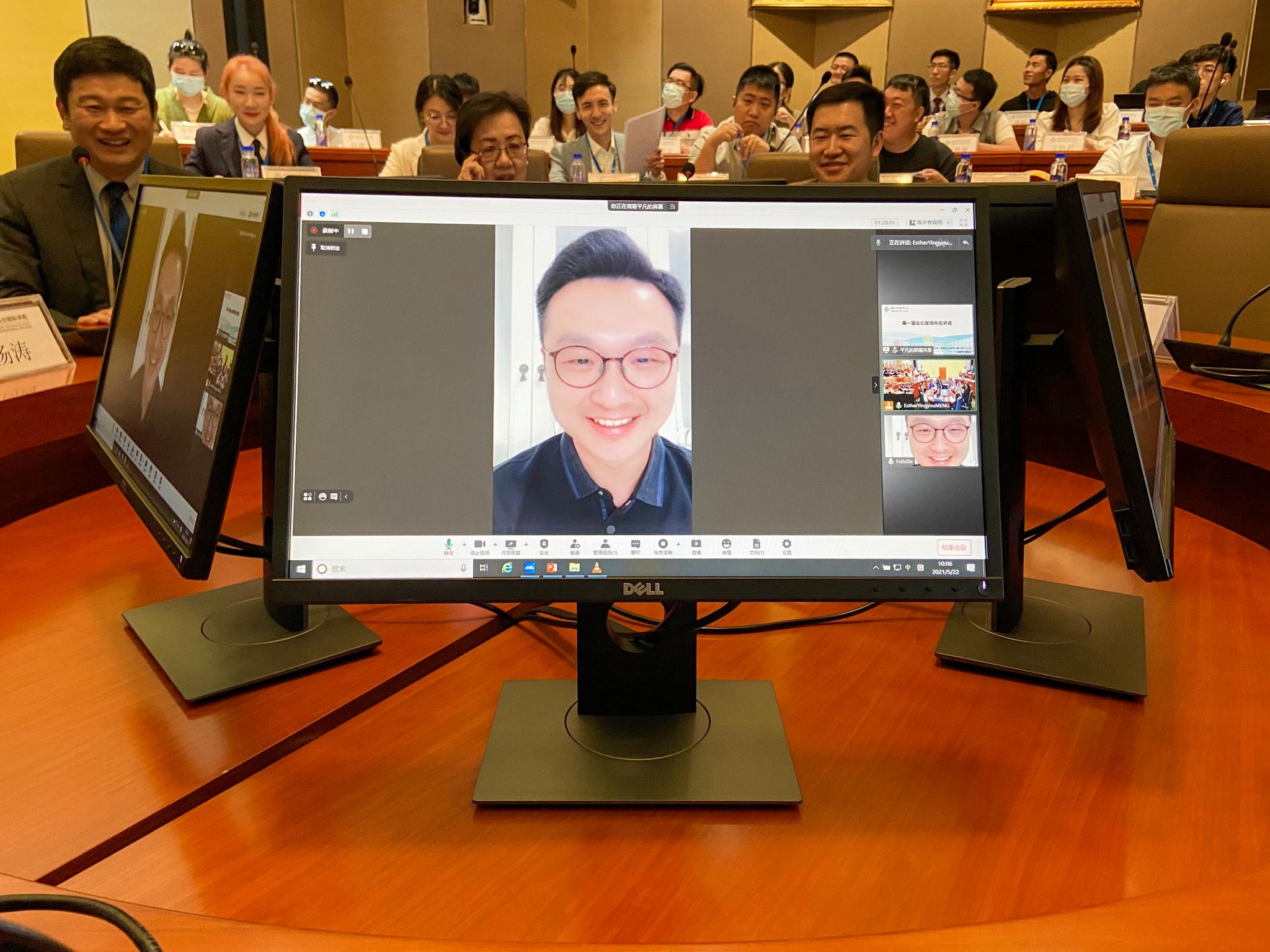 第一届校友会会长谢澈先生因疫情原因,通过网络参加会议,会议上总结了几年以来校友会工作情况与成果,感谢各位理事会成员的辛苦付出,也表达了对校友会第二届理事、监事能够使校友会更上一层楼的殷切期望。