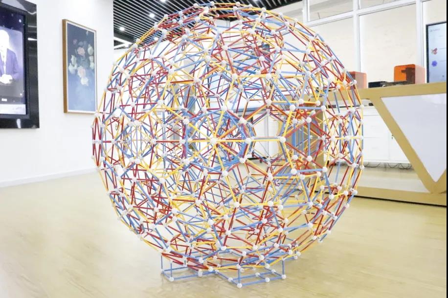 其中,陈列的ZOMETOOL截角600胞体大球,由数学体验馆老师和学生代表近20人历时2小时共同完成,展现了数学活动的挑战性与趣味性。