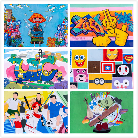 本次涂鸦墙的设计及呈现效果全部由UIC师生共同完成。参赛作品围绕“大学小镇、博雅教育、环保意识、社会话题、校园文化、传统文化特色课程”六大主题内容进行创作,既结合了UIC的校园建筑风格,同时融入时代文化元素。