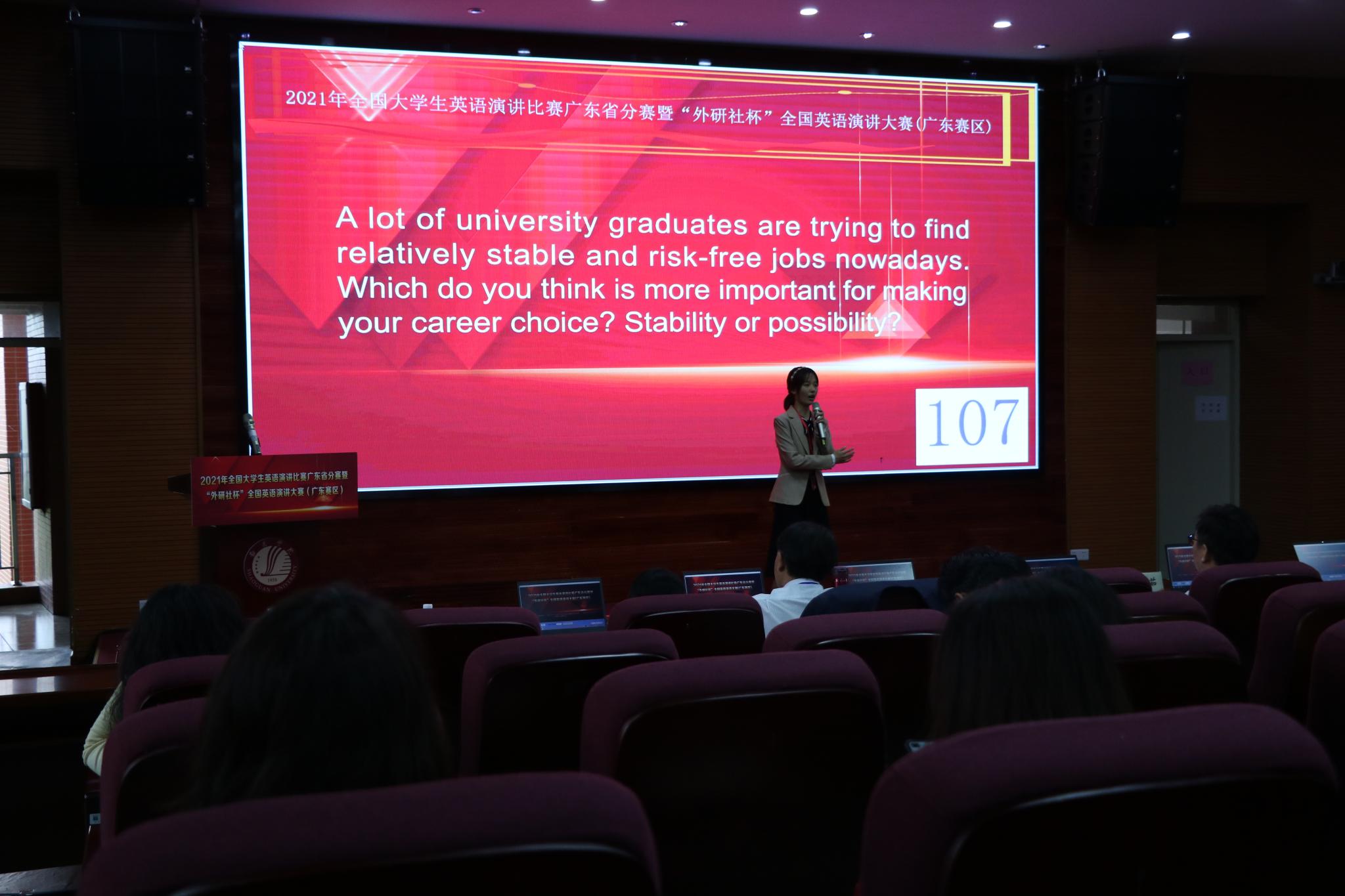 2021级新生毛梦迪虽未在省赛取得理想成绩,但目前,她在“外研社杯”网络赛场上已晋级全国前300强,是广东省入围的22名选手之一。
