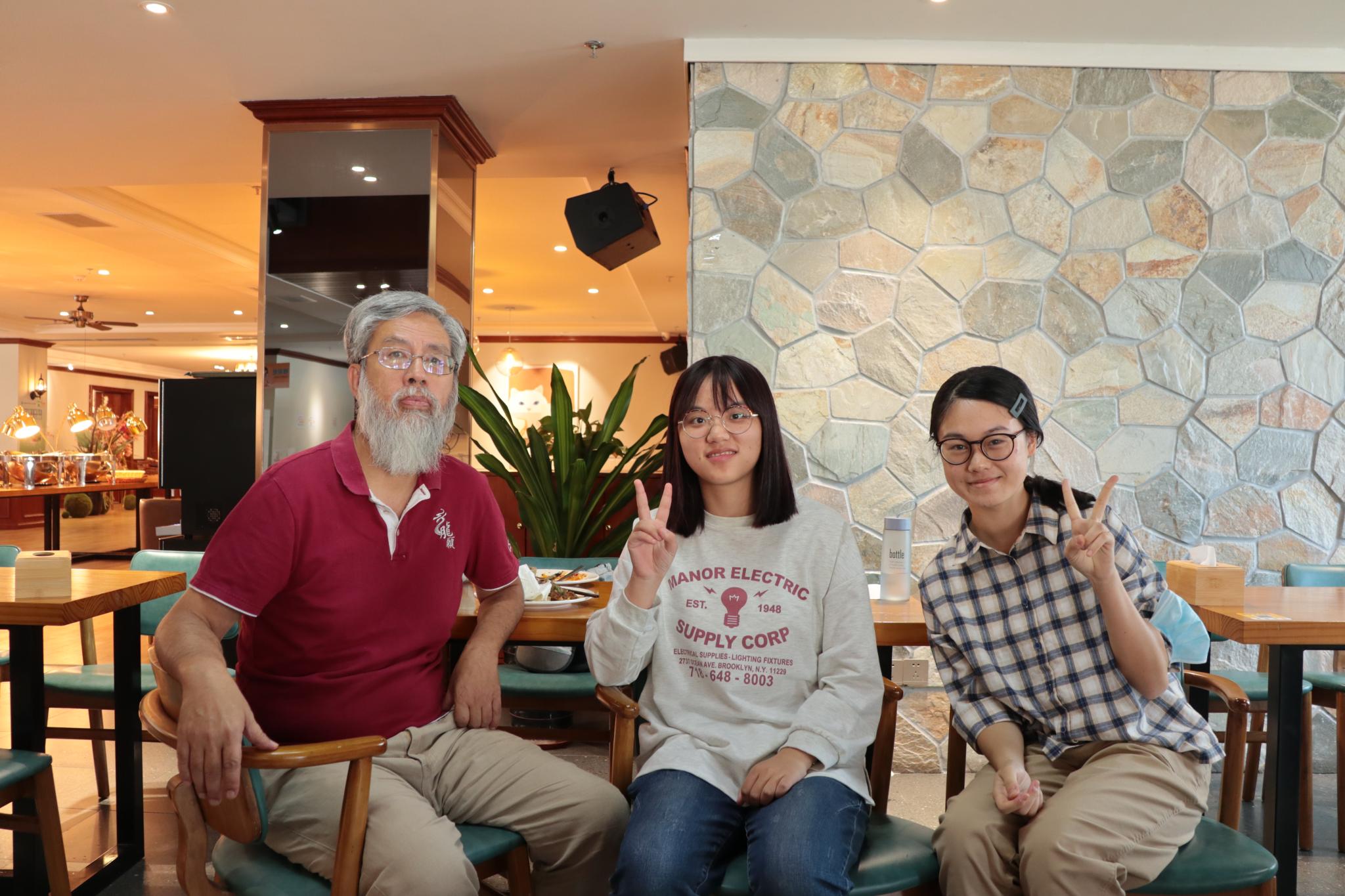 赵心可(中)、陈懿宁(右)与副教授阮纪宏(左)约饭