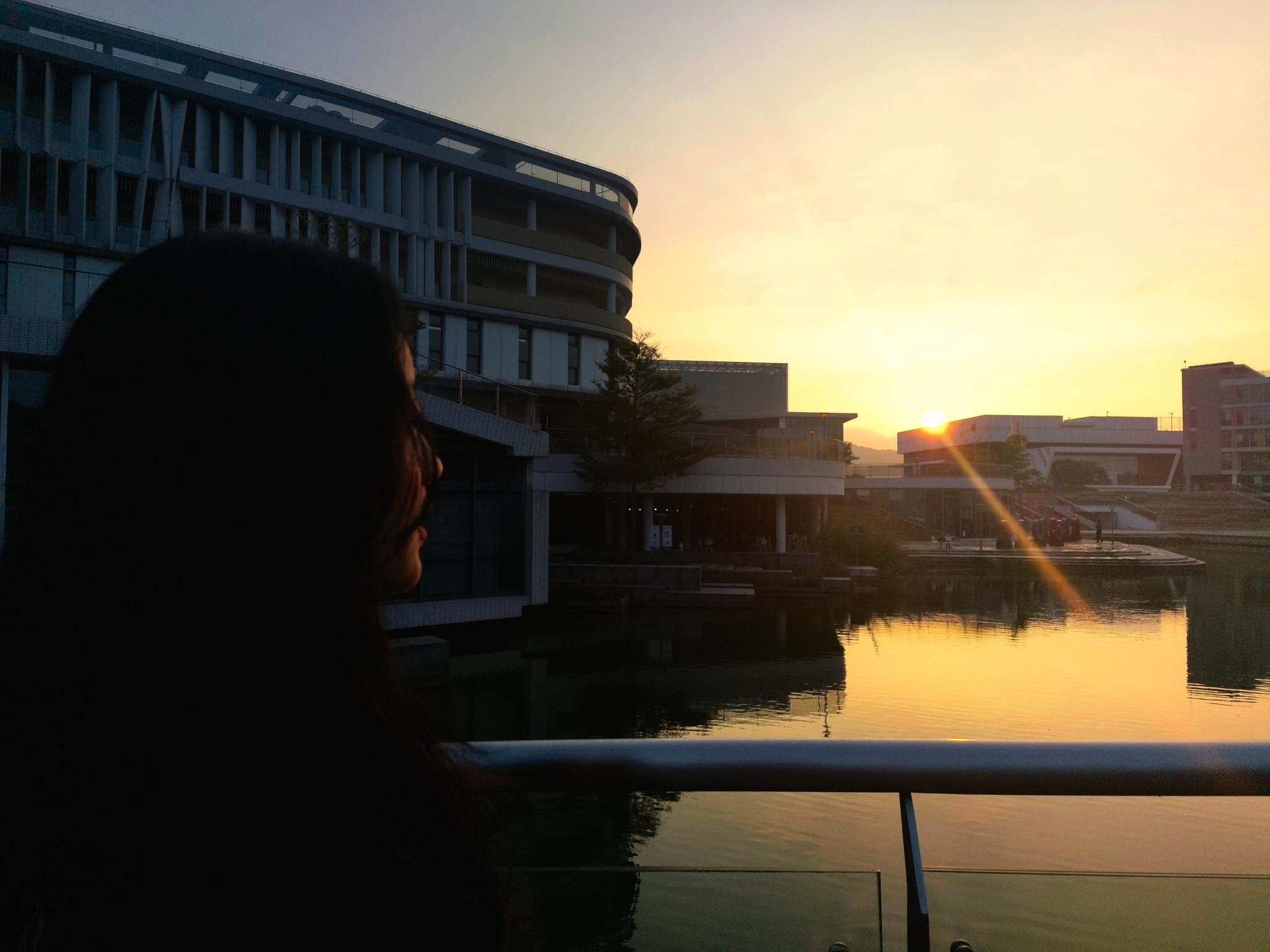忍不住举起手机,拍下日落的校园,想起高中的傍晚同样抚慰过自己的晚霞。