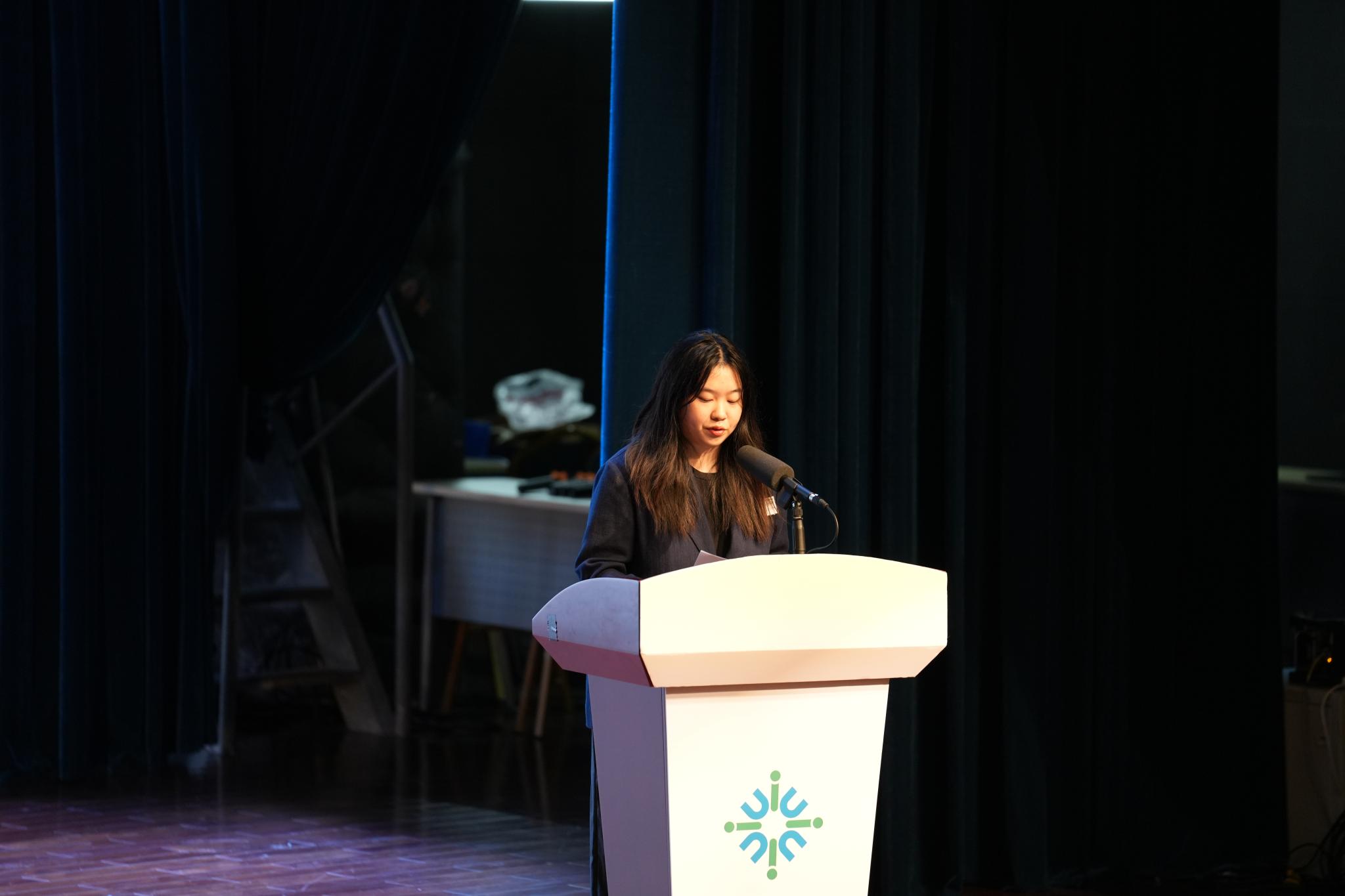 第十六届学生会干事会主席王子叶同学代表全体学生组织干事发言,概括了学生组织未来发展期待与目标并表达了作为学生领导者的自我要求与期许,“我们会及时回应学生的需求,保障学生权利,创造连接学校与学生更加便利的沟通方式,共同迈向UIC更好的未来。”
