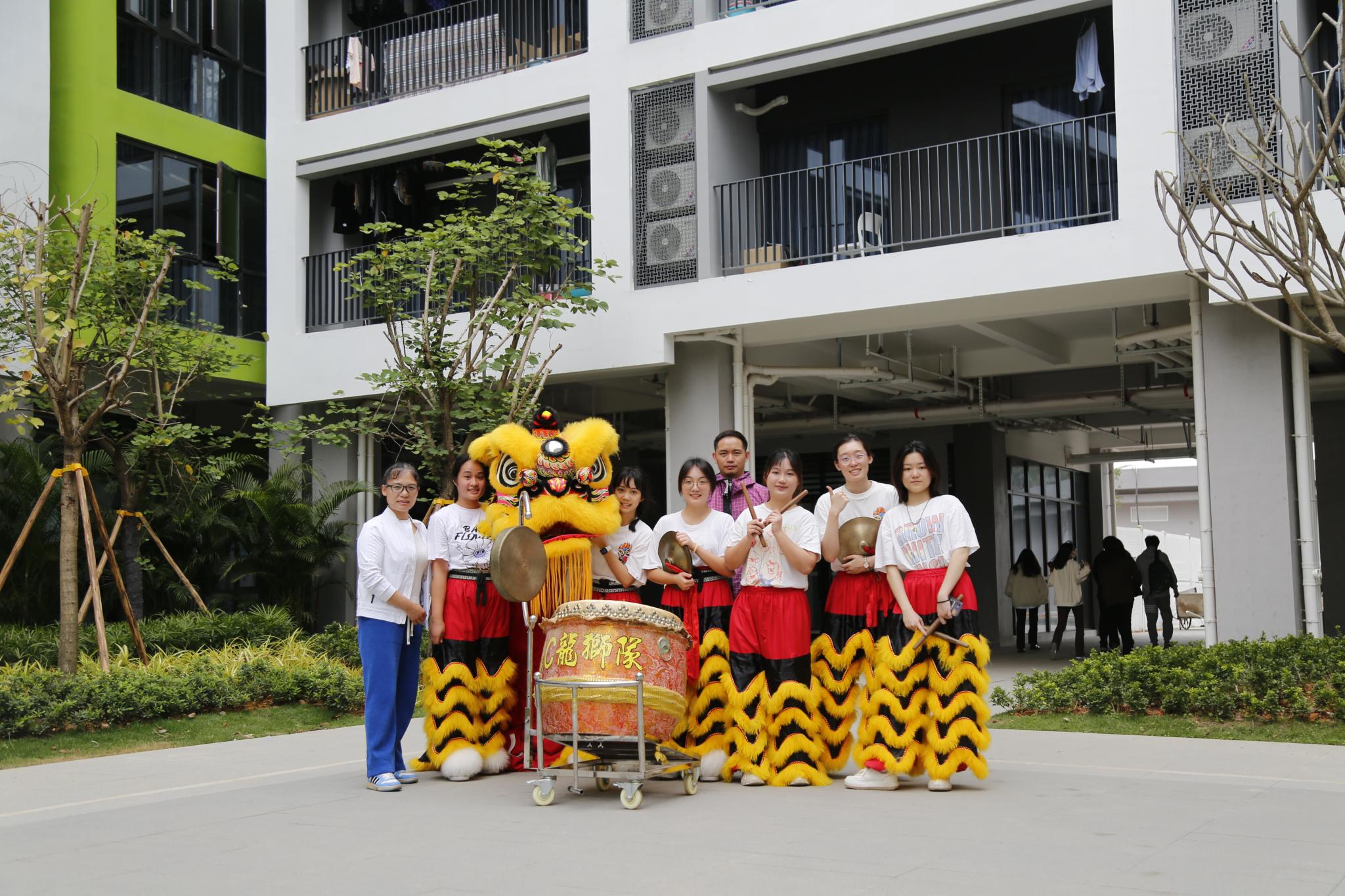 2023年2月6日中午,校园锣鼓喧天。各苑舍的舍监和苑舍学生委员会成员在苑舍门口迎接醒狮“采青”。利是(红包)与生菜悬挂于苑舍门梁,醒狮高高跃起采下“福气”,为师生送祝福。
