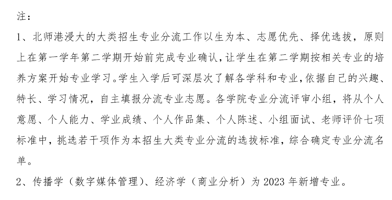 附表:2023年北师港浸大招生专业列表