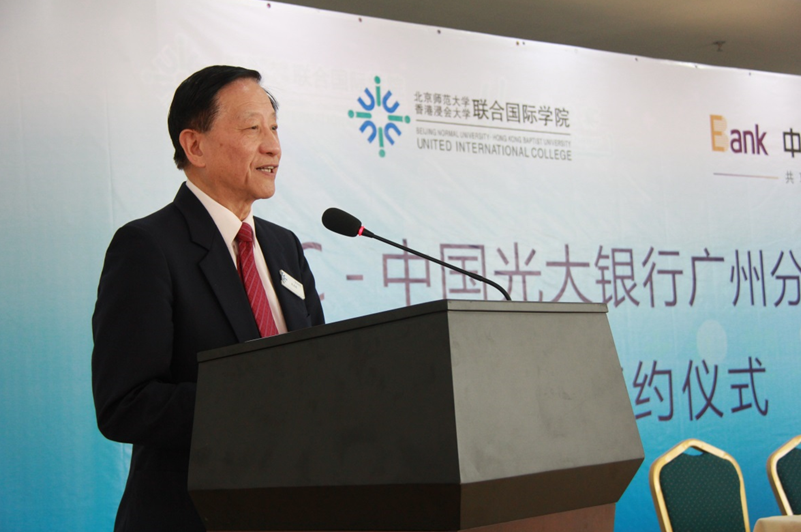 出席签约仪式的还有光大银行珠海分行行长刘岩,广州分行机构事业部邓于慧副总经理、人力资源部培训中心高志宇副经理,UIC副校长张聪教授、财务规划及发展执行总裁陈立信先生、四维教育协调办公室处长黄志威先生等。