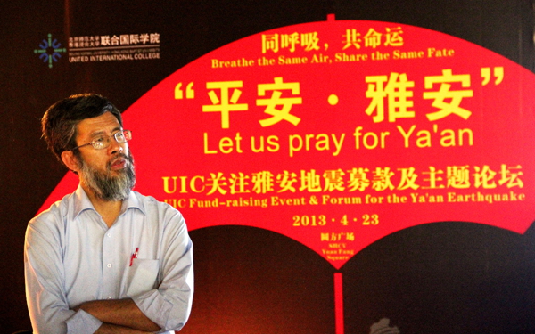 2013年4月20日8时02分在四川省雅安市芦山县,发生7.0级地震。截至记者发稿前,已造成193人遇难,199余万人受灾。人间有真情,处处有真爱,全国各地的大学生们纷纷自发组织祈福募捐活动。4月23日晚, UIC关爱雅安行动小组的同学们自发组织了一场“UIC关注雅安地震募款及‘钱该如何捐’”的主题论坛,并在同学们中引起了积极的反响。