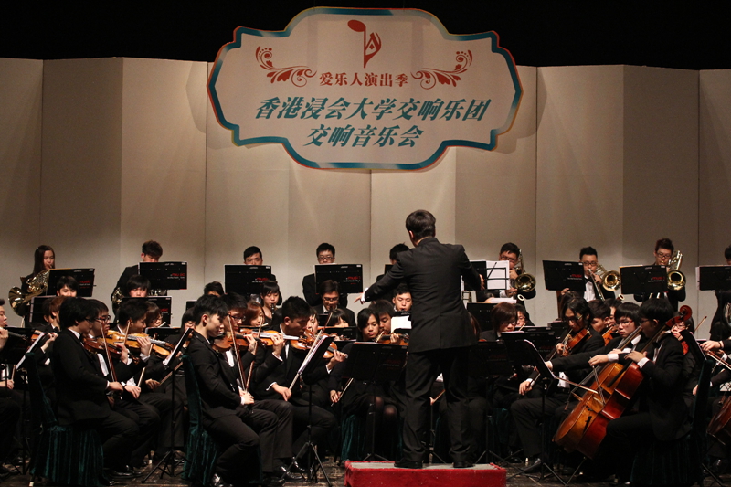 香港浸会大学交响乐团是香港历史最悠久的大学乐团之一,囊括了浸大的音乐精英。乐团以音乐系的学生及校友为骨干,为学生提供学习以外的一个表演平台。在同一个舞台上,观众可以看到一班未来的中医师、电视制作人、新闻从业员、学校教师以至商界领袖,与一众音乐学生共奏和谐乐章。他们以不同的背景身份与经验和年轻学生在一起,成就了浸大校园里一道独特的创意风景。