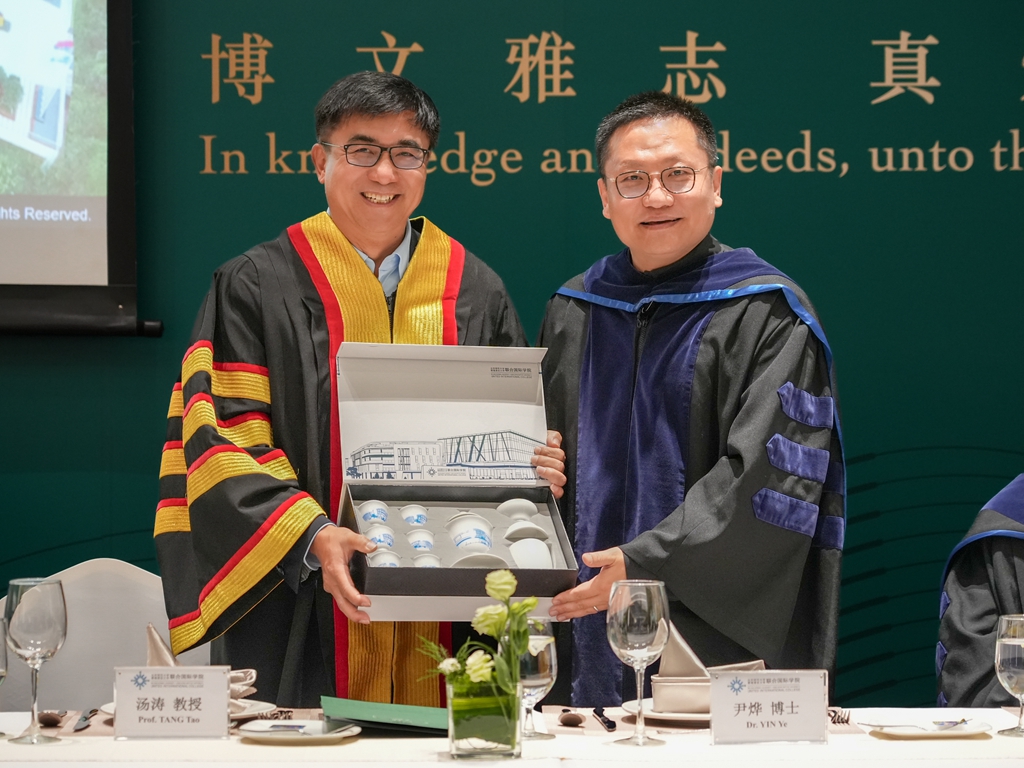 北师港浸大校长汤涛院士向尹烨博士致送纪念品