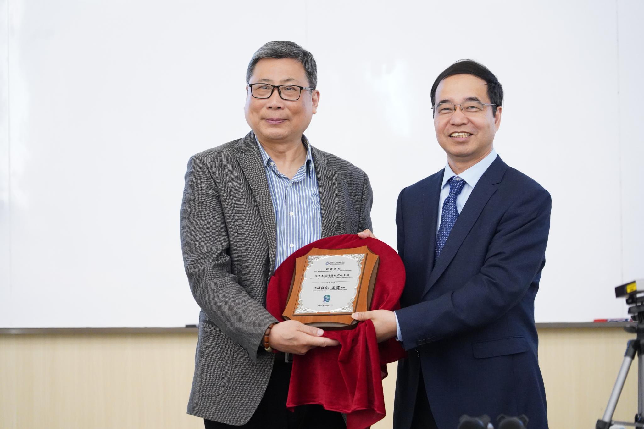 北师港浸大副校长(学术)周永明教授(右)向孟建教授教授(左)赠送纪念品