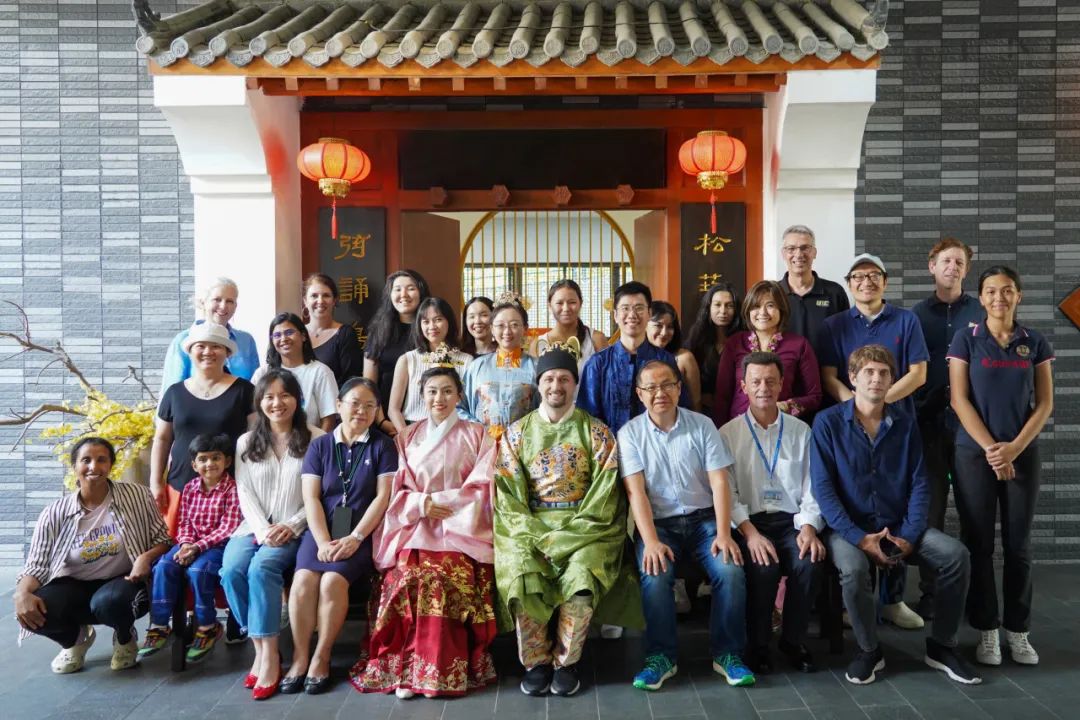 欢声笑语间,师生酌香茗、品月饼、制灯笼、猜灯谜,其乐融融。活动现场还安排了汉服介绍环节,向国际师生展示了华夏服章之美。