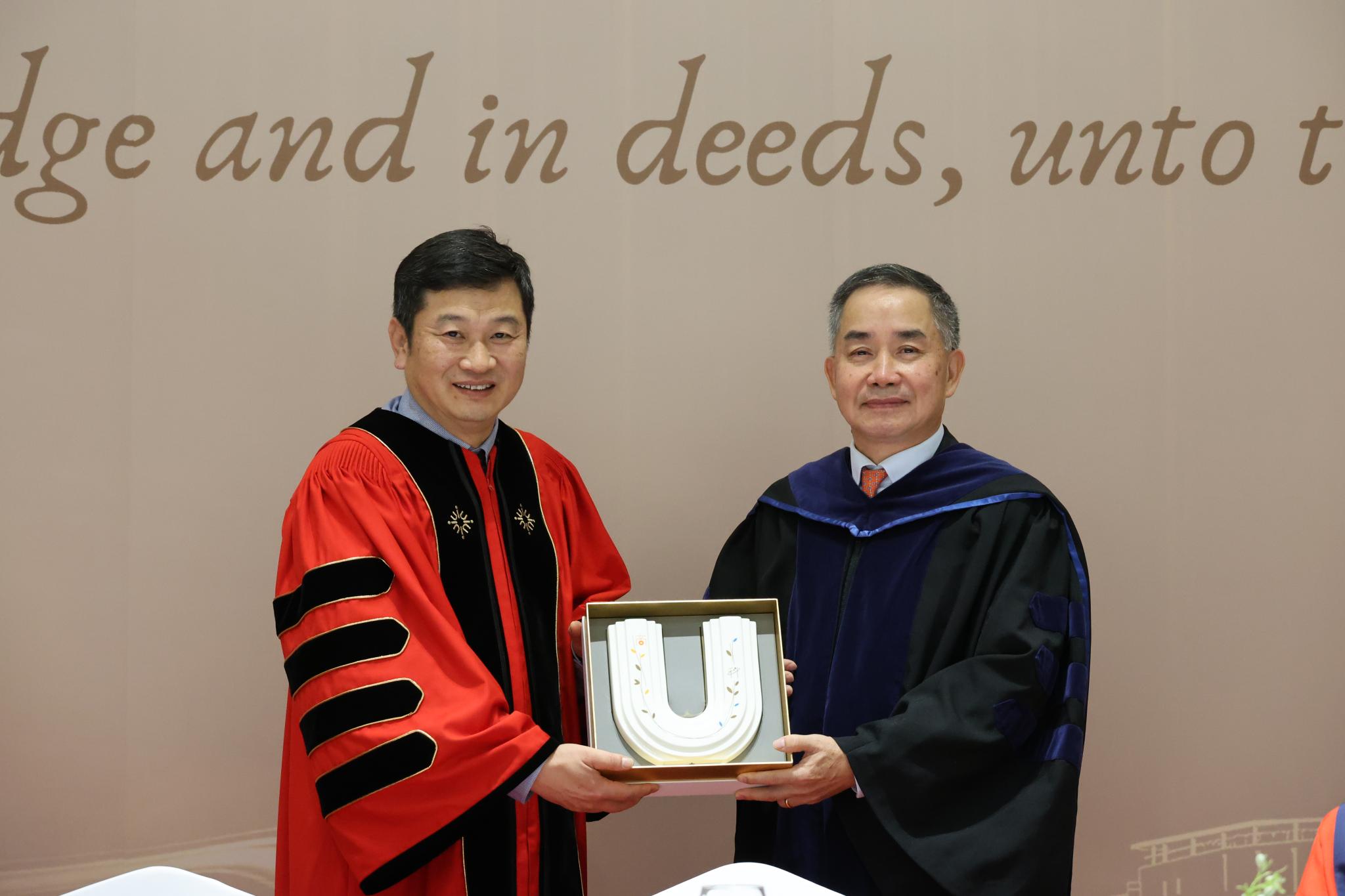北师港浸大校长陈致教授向陈志武教授致送纪念品