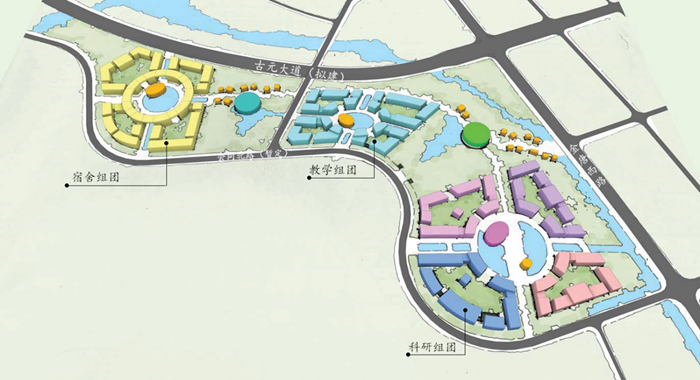 二期校园紧邻体育公园,占地面积约550亩。根据用地实际情况和学校发展计划,地块将规划三个组团,分别是科研区、教学区和学生宿舍区,计划建筑面积约20万平方米,拟建筑功能包括宿舍楼、教学楼、科研中心、国际交流中心、孵化中心等,配套食堂、露天泳池、停车场等。