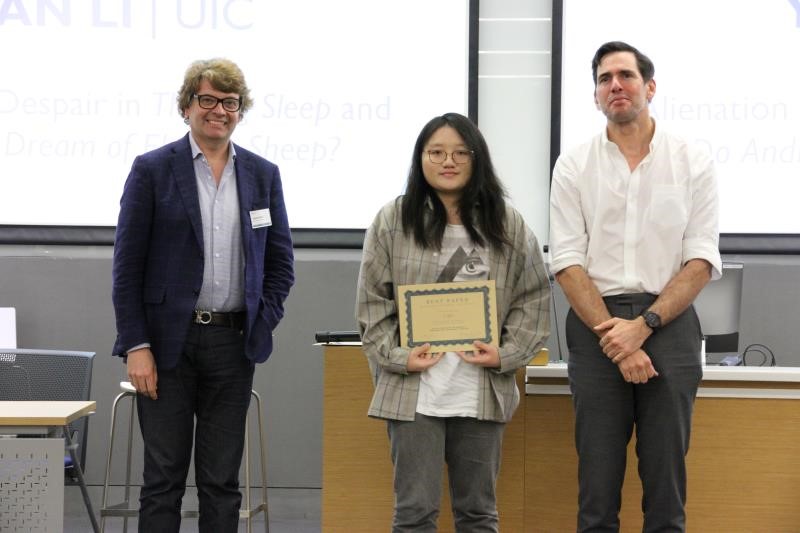 英语语言与文学专业学生李宜繁(中)获得“最佳论文”奖