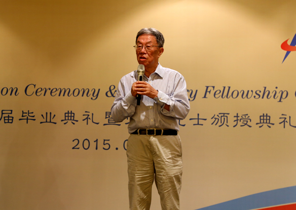 在学生的助兴表演之后,张信刚教授首先发言说,十年前吴清辉校长就跟他讲过北上办学的理想。他表示:“在这十年中,联合国际学院就像一棵果树,吴清辉校长就像一个辛勤的园丁。十年了,这棵果树也该开花结果了。眼见为实,如今,联合国际学院已经取得了斐然的成就,培养了一届又一届的学子。我相信,联合国际学院会有更多的十年,会有一个更远更好的未来。”
