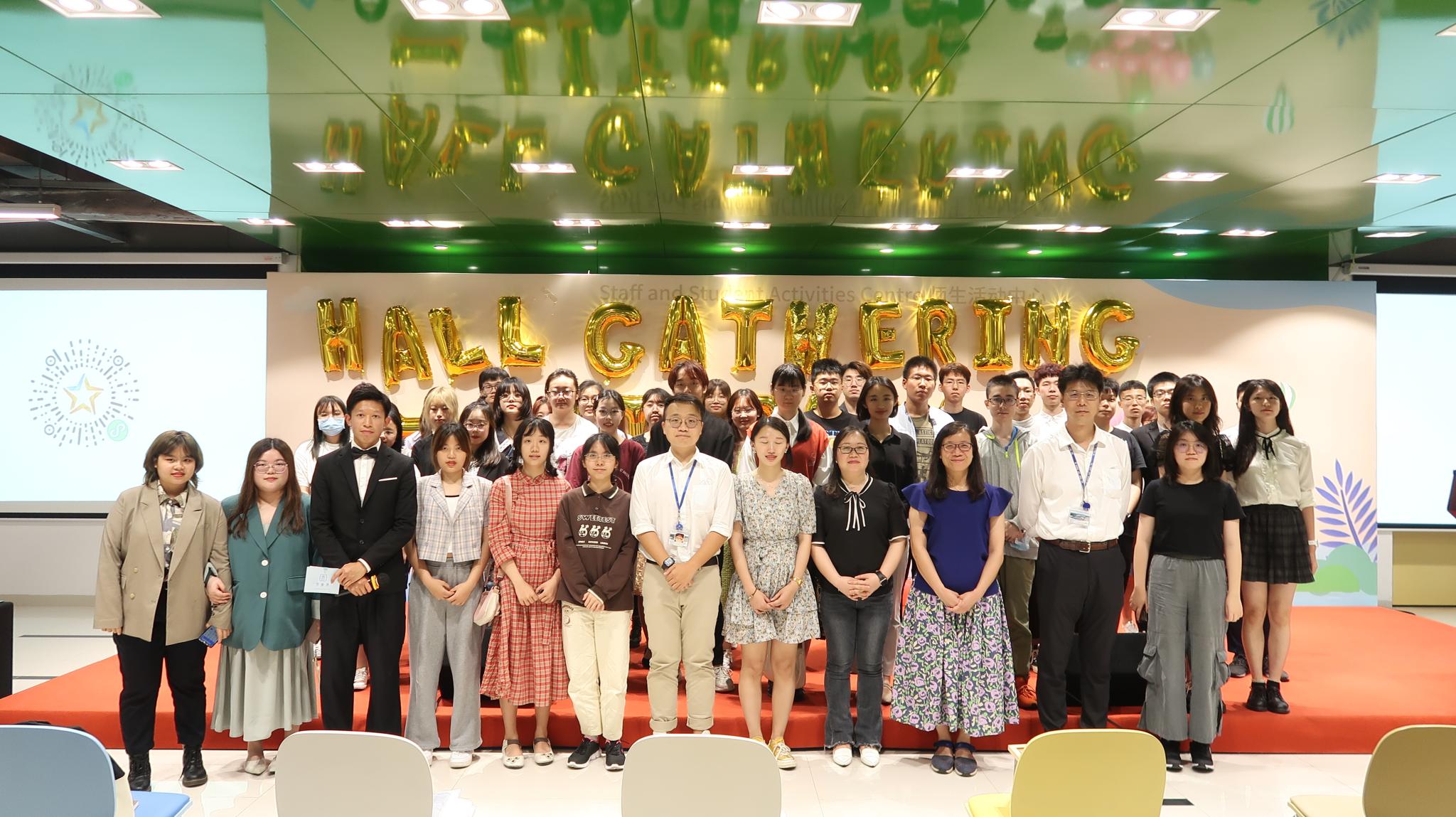 邓美结博士(前排右三)参与文雅苑Hall Gathering活动