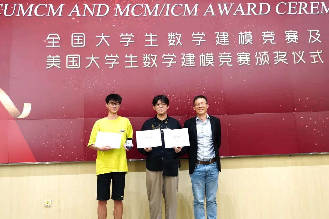 潘建新教授(右一)为美赛一等奖获奖同学颁奖