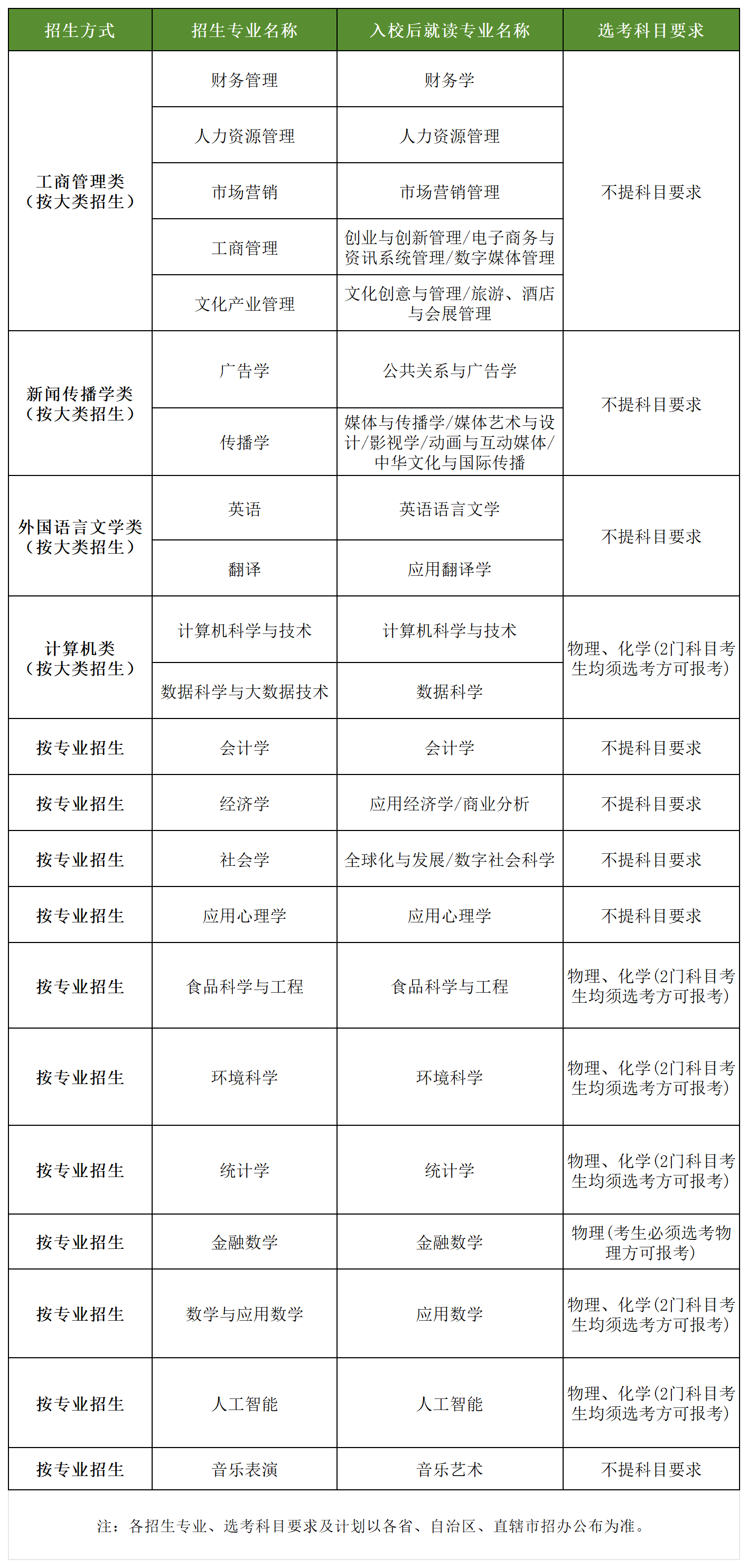 2024年,学校31个本科专业将继续按专业大类加专业的方式招生,广东考生选考科目要求如下: