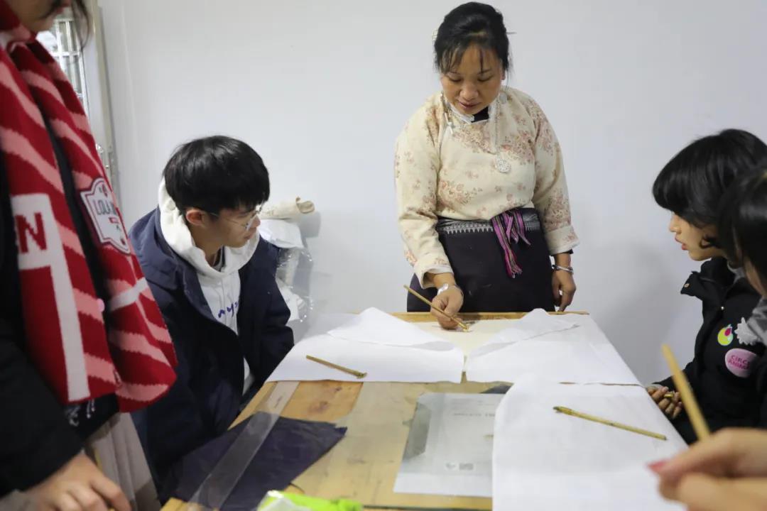 “遗蓝文化”团队深入少数民族聚居地,前往贵州黔东南传统村寨和云南巍山扎染厂等地调研,与非遗手艺人交流合作。同学们发现,山区不方便的交通条件造成少数民族优秀文化走不出来等一系列窘境,而当地的环境和气候为蓝草提供了良好的生产条件,有利于低成本生产蓝染产品。于是团队结合苗族蜡染、刺绣,白族、彝族扎染,侗布,印染等众多国家级非遗技艺,与当地手艺人一起开发文创产品,并在设计时参考当地文化背景和传统故事,赋予产品深刻的文化内涵。