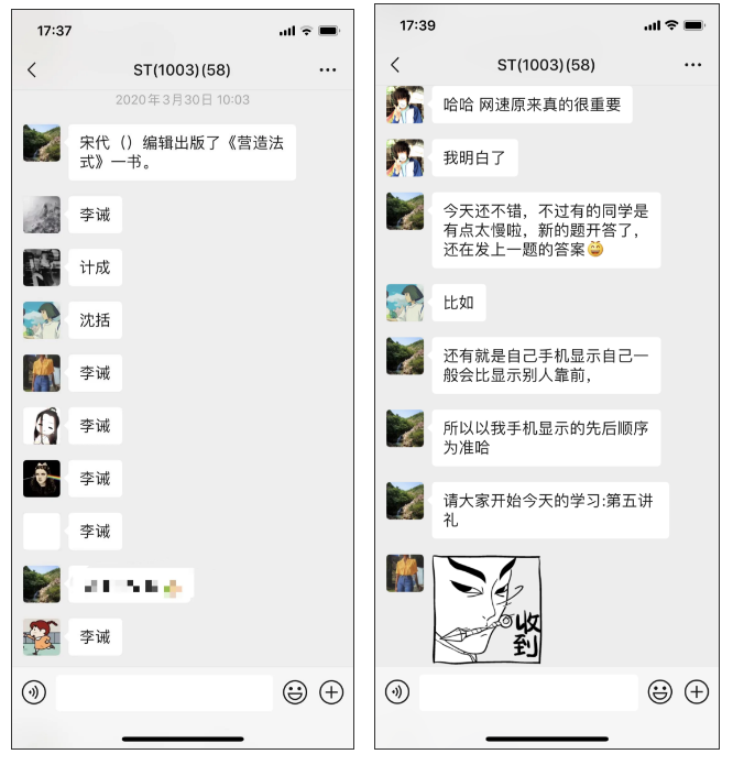 王琴老师说:“设置抢答环节主要是针对网络学习的短板,大家都各自宅在家里,没有一个群体学习的氛围,抢答的方式让大家聚集在一起,围绕课程内容,互相学习、互相督促,共同提高。我们也在抢答这种形式之外设置了课前口头报告、课后思考题、专题图文分享等各种教学互动形式,让学生有多种途径表现自我,在思考与分享中不断提高。”