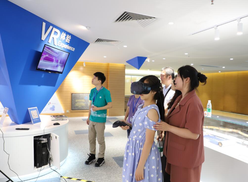 学生和家长在“寻迹UIC”展厅体验VR全景地图