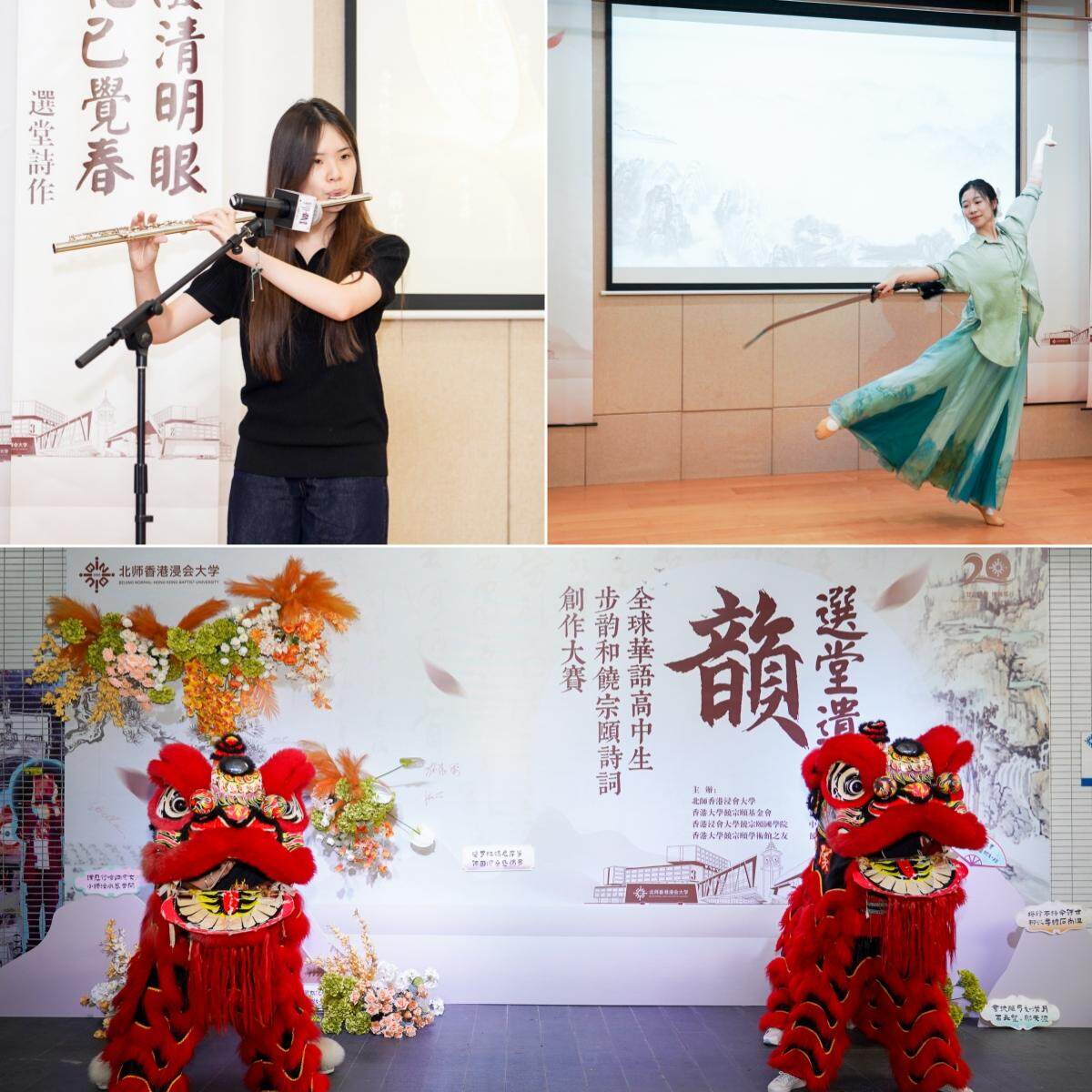 作为国学大师,饶宗颐一生深耕中华文化,其诗词荟萃古今智慧,此次大赛正是以诗词为桥,连接全球华语青年的文化血脉。在现场,嘉宾们共同推杆,正式开启这场文化盛事。来自北师港浸大的学生也带来了精彩的舞狮、长笛、剑舞等精彩节目。
