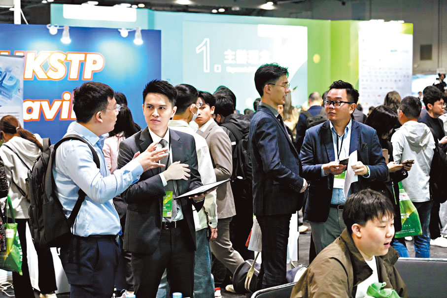 ●家長看中留港就業機會。圖為創新香港─國際人才嘉年華2025,求職者在各企業攤位前排隊諮詢。資料圖片