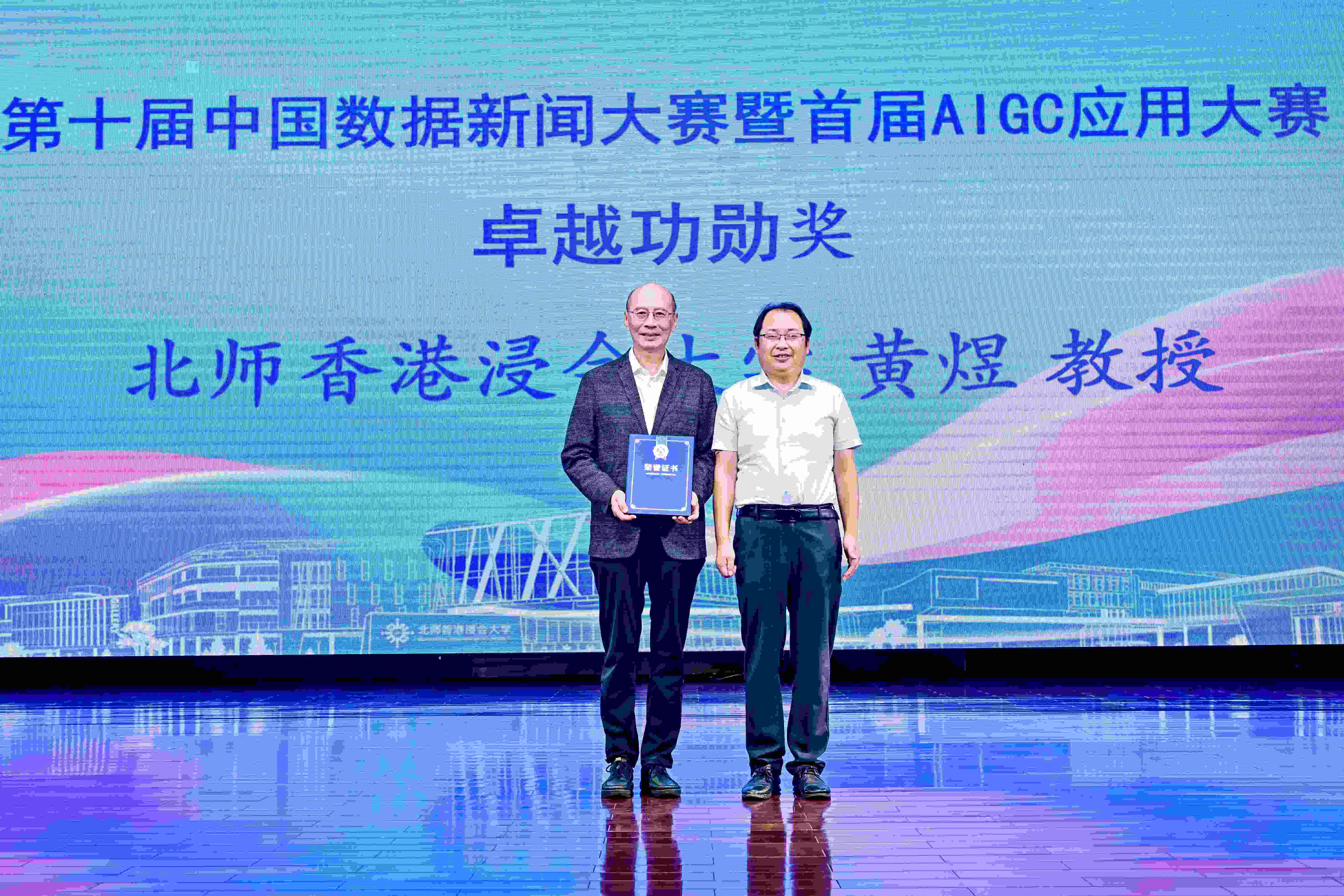 值得一提的是,本屆賽事特別為北師香港浸會大學研究生院院長黃煜教授頒發「卓越功勳獎」,以表彰其長期以來對賽事發展給予的鼎力支持和突出貢獻。黃煜教授長期以來關注賽事成長,以專業視野和資源支持為大賽的規範化、國際化發展注入強勁動力,其深耕行業、助力人才培育的精神獲得廣泛認可。中國數據新聞大賽創始人陳積銀教授為黃煜教授頒獎,彰顯了行業對深耕者的珍視和賽事傳承發展的堅定信念。(記者 黃鳳鳴)